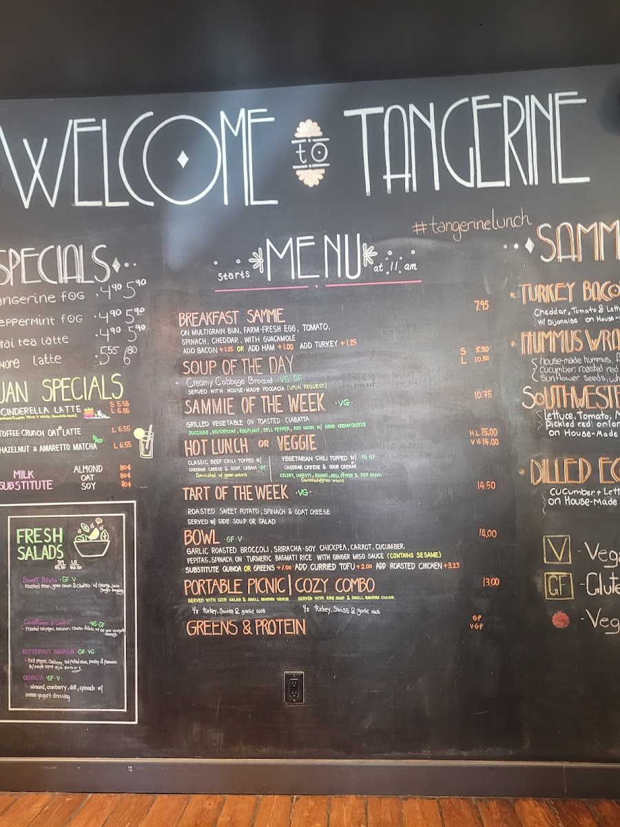 Tangerine boasts an ambiance that's both cozy and stylish, reminiscent of a traditional coffee shop yet with a modern twist. As you step inside, you’re greeted by a warm and welcoming atmosphere, complete with the aromatic embrace of freshly brewed coffee wafting through the air. It’s a place where the coffee’s rich flavors mingle with the chatter of happy patrons, creating a perfect backdrop for a morning pick-me-up or an afternoon escape.